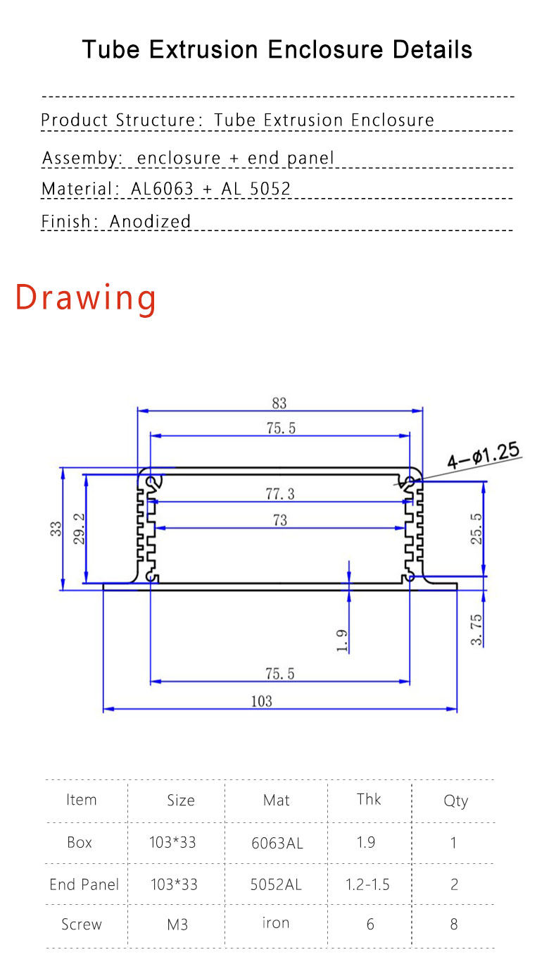 103*33China Manufacturer Split Body Project Box Case Aluminum enclosure for Electronic