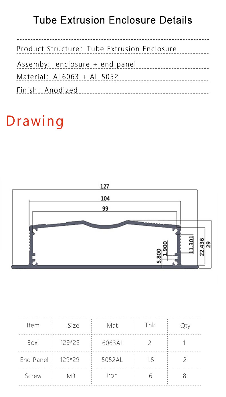 129*29-L electronic enclosure design aluminum extrusion material large project box