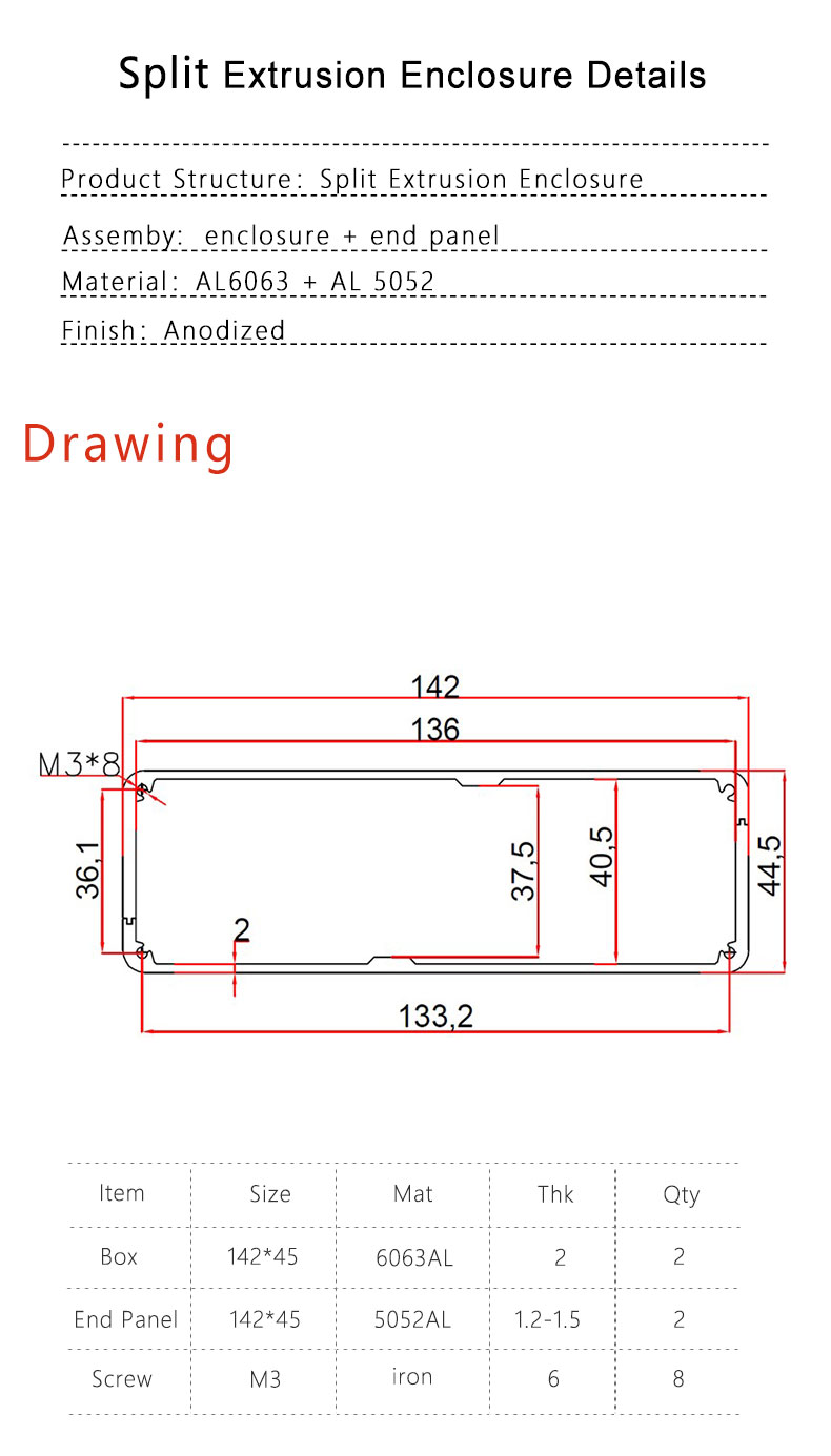 142*45Aluminium extruded adjustable adapter extrusion enclosures metal electronics case 6063 Scrap For Sale for communication system