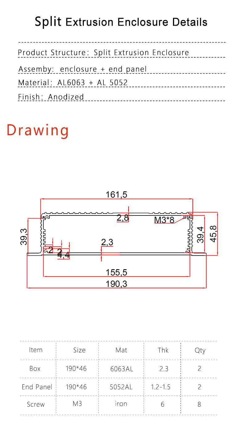 190*46Extrusion aluminum material electronics enclosure metal detector shell