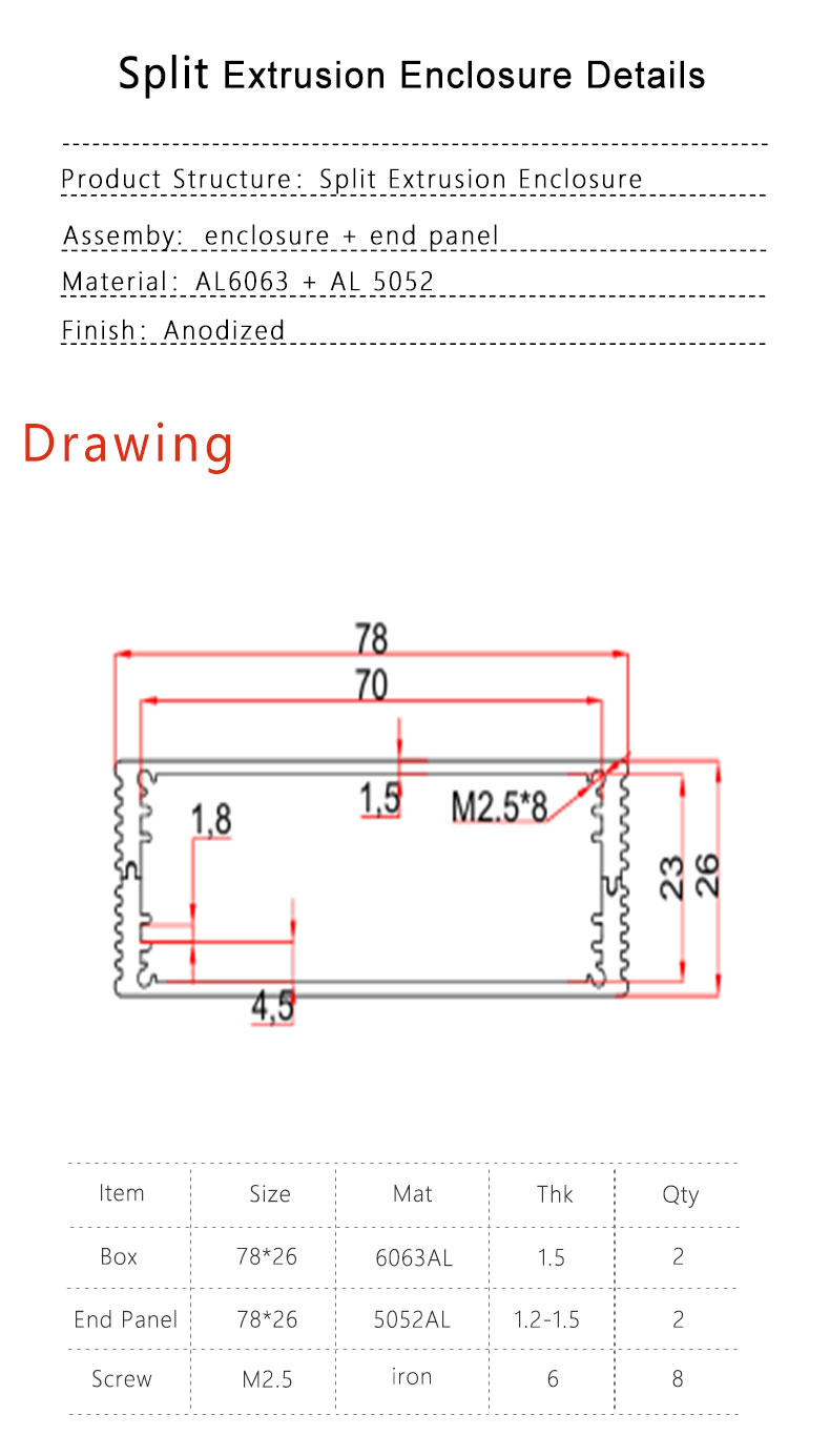 78*26Aluminum electrical pcb instrument extruded box enclosure powder supply PCB chassis enclosures