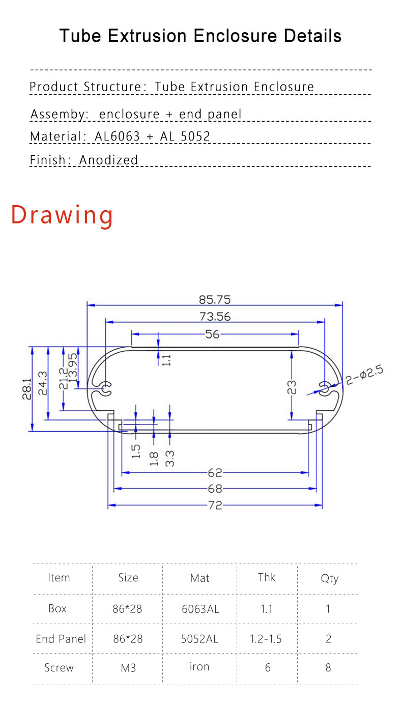 86*28Best Selling high quality aluminum extrusion electronic heatsink Housing/Enclosure/Case/Shell