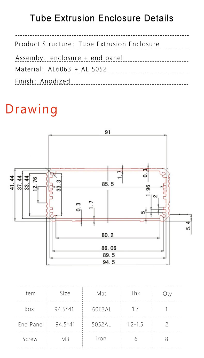 94.5*41china gold supplier anodized custom extruded aluminum enclosure for circuit board